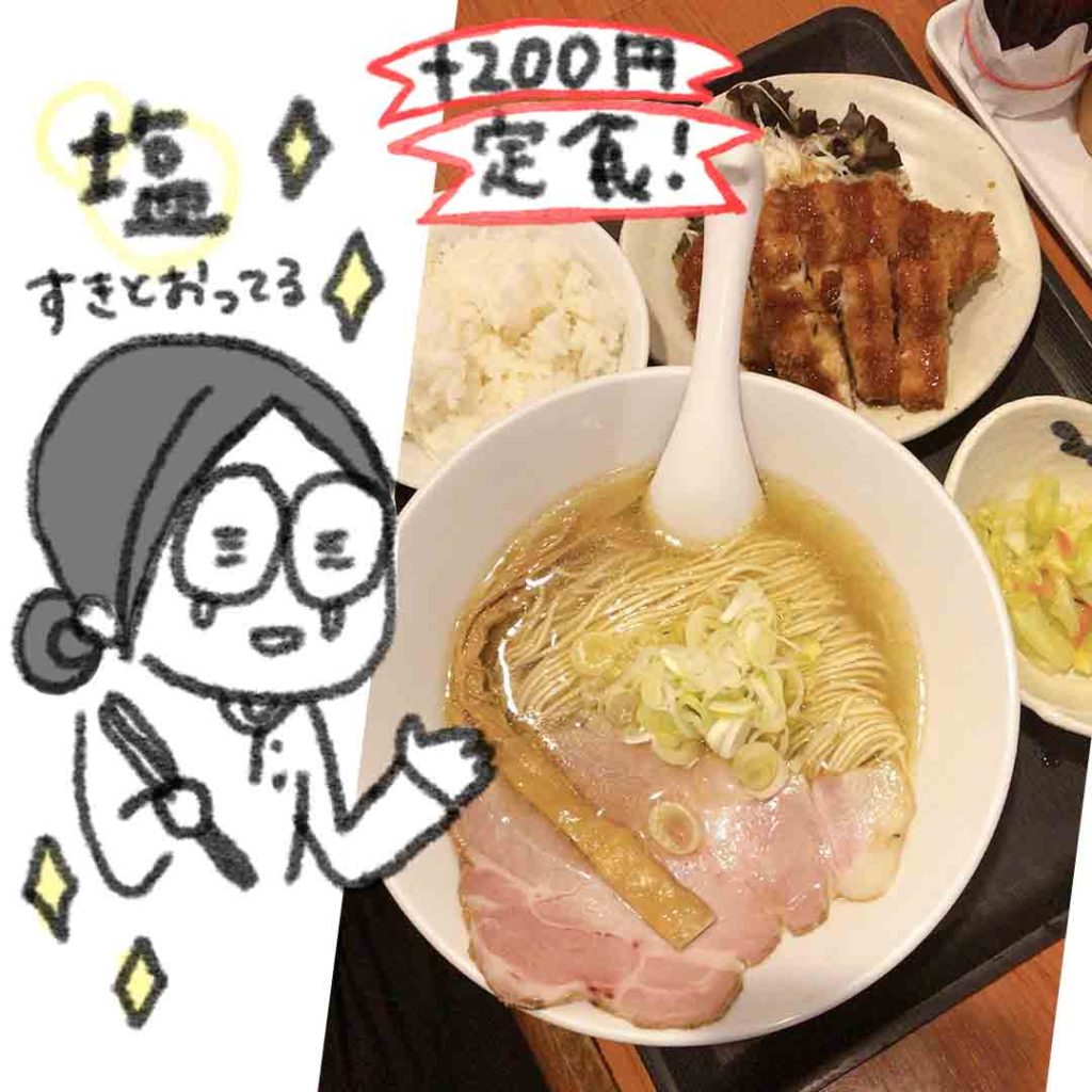 お店のオススメ塩ラーメン、人気のワンタン麺にしました